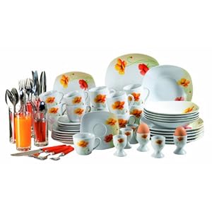 921388 Features: -Aus hochwertigem Porzellan.-Eckige Ausführung.-Inklusiv Besteck .-72-teiliges Set.-Material: Porzellan.-Mikrowellengeeignet.-Spülmaschinengeeignet.